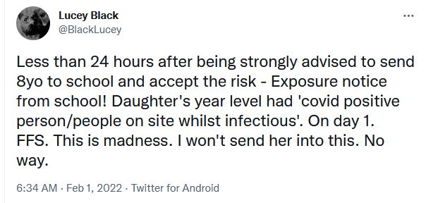 The governments (Liberal/Labor) who are forcing kids back to school, seem to think it is 🤔