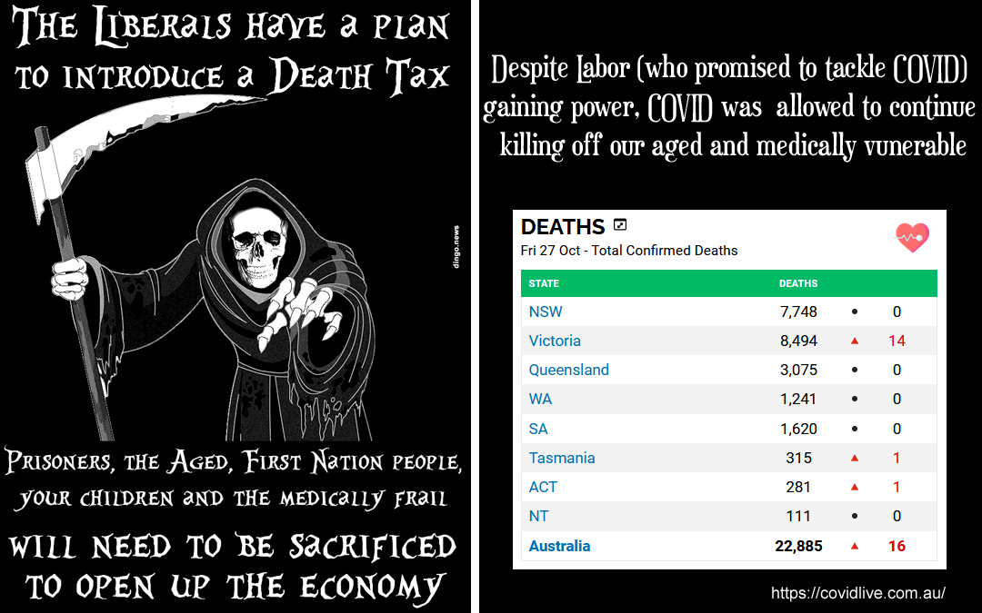 (A take on the Grim Reaper memes the LNP dishonestly used to scare people with a Labor Death Tax)
