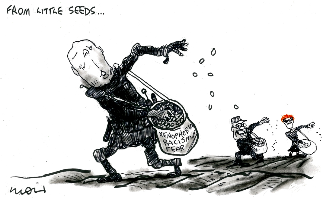 … and was only spared the ignominy of his default response of sending coloured people to remote offshore detention camps, by “virtue” of his being white and privileged.